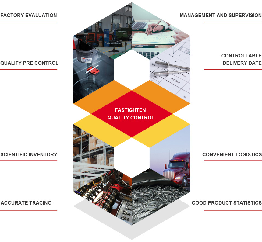 As an active supporting supplier focusing on the design of fastening scheme in China,Fastighten fastener provides the purchase and sales activities of various connectors,fasteners and related supporting tools and accessories,and is committed to creating a complete one-stop service for our industrial customers from purchasing,quality inspection,warehousing to point-to-point logistics distribution to the door.Therefore,Fastighten is very strict in the selection process of suppliers.We will conduct a comprehensive evaluation on the development of every potential supplier,audit every supplier on a regular basis,and conduct real-time monitoring and inspection on all products.All we do is to ensure the quality of kuaiteng products you use.For you,Fastighten products mean:better planning,more significant cost savings,more efficient productivity.