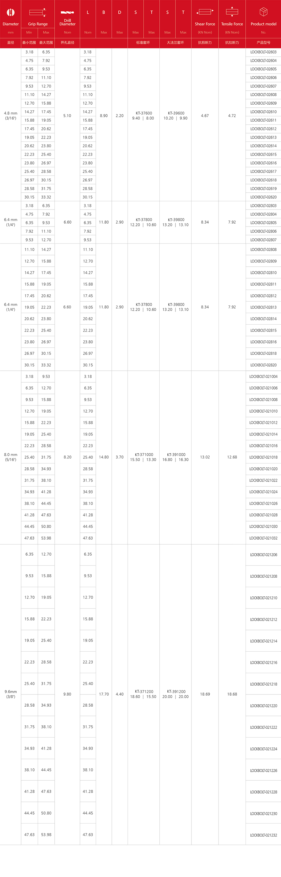 90°沉頭環槽鉚釘(全鋁合金)AALBC