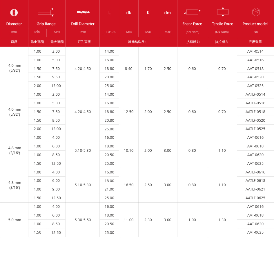 燈籠鉚釘(鋁合金&鋁合金)AAT